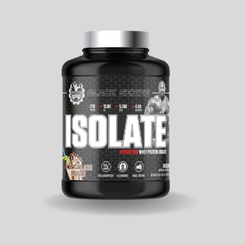 Dexter Jackson Black Series Isolate is a chocolate shake supplement that is designed for those wanting to increase their Protein intake. It contains 25g of fast-acting whey-based isolate protein per serving as well as optimal levels of branched-chain amino acids to help support energy levels and muscle recovery. Additionally, Dexter Jackson Black Series Isolate is also packed with digestive enzymes for improved nutrient absorption and utilization. Each scoop has 5g of dietary fiber making it an excellent way to keep you feeling satiated throughout the day. It also contains 0g of sugar, 0g of trans fat, and only 3g of carbs making it perfect for any low-sugar, low-carb diet or nutrition plan. Lastly, this powder also has a delicious milk chocolate flavor that makes it easy to drink. It is available in five-pound containers with 76 servings per order.