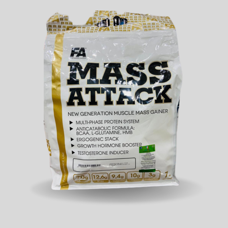 FA Mass Attack Mass Gainer is a scientifically designed anabolic mass gainer designed to help you increase your muscle mass and strength. It contains a unique blend of proteins, carbohydrates, creatine, pure whey, and essential vitamins & minerals that provide a sustained release of energy to maximize anabolic processes and boost muscle growth. Engineered to provide more than 1800 Kcal per serving, it helps you put on lean body mass with minimum body fat. It also helps to increase muscle size and strength, refill muscle energy, and repair and reinforce muscle fibers.