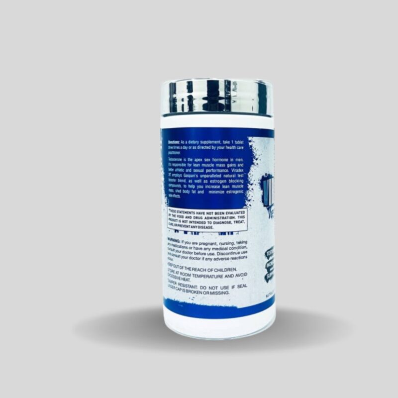“Gaspari Nutrition Viradex XT” appears to be a dietary supplement marketed as a testosterone booster. Testosterone boosters are products that claim to enhance the body’s production of testosterone, a hormone that plays a crucial role in muscle growth, energy levels, and overall vitality, particularly in males.