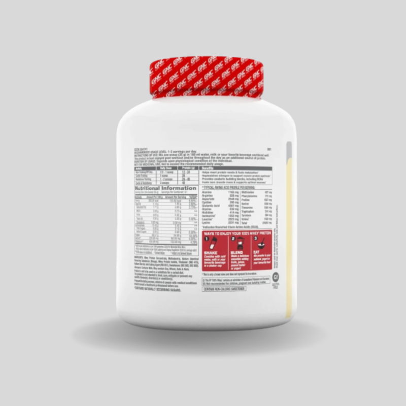 GNC Pro Performance 100% Whey Protein Powder is a highquality protein powder that is designed to help athletes and active individuals build lean muscle, repair damaged muscle, and increase strength. It is made from 100% whey protein, which is the highest quality form of protein available. It contains a blend of fast and slow-digesting proteins for sustained energy and muscle recovery. It also contains added vitamins and minerals for enhanced nutrition and is low in fat, cholesterol, and sugar. This protein powder is an excellent choice for those looking to boost their muscle building and recovery efforts.