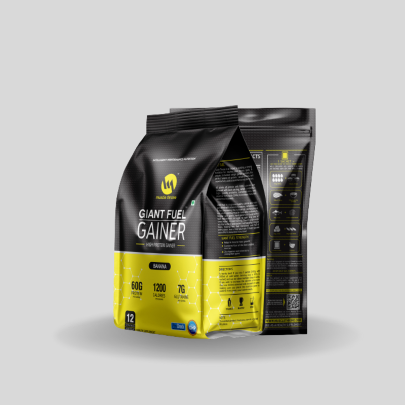 Muscle Throne Giant Fuel Gainer is a high–calorie supplement designed to help you meet your dietary demands with an added boost of lean muscle mass. Made with an elite blend of whey isolate, egg albumin, and slow–release carbohydrates, Muscle Throne Giant Fuel Gainer provides an excellent source of protein to help you reach your daily macro goals easily. Our Ultimate Gainer Formula is high in essential amino acids, creatine, and digestive enzymes, helping to support extended muscle growth and improved recovery times – so you can reach your full potential. Our GIANT FUEL GAINER is crafted with a superior flavor system, keeping your taste buds satisfied while you power through your day. Plus, we‘re committed to your health with an NSF Certified for Sport® stamp of approval – so you know we use clean ingredients that are safe and effective. Conquer new peaks and challenge your limits with Muscle Throne Giant Fuel Gainer – your companion on your journey to the throne!