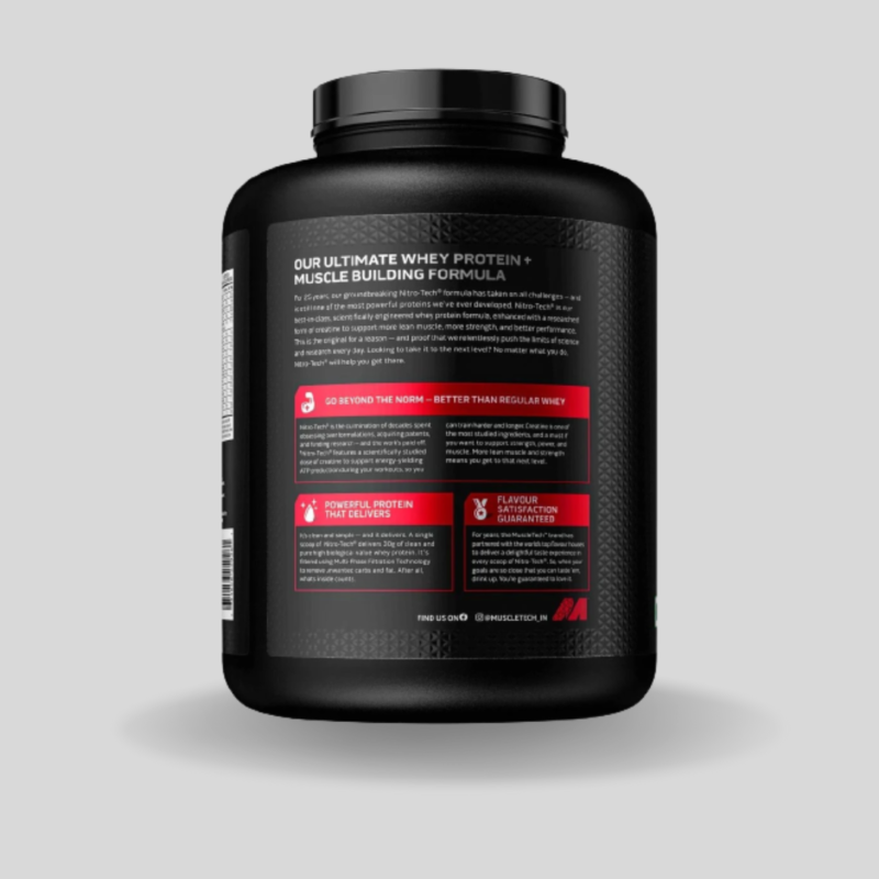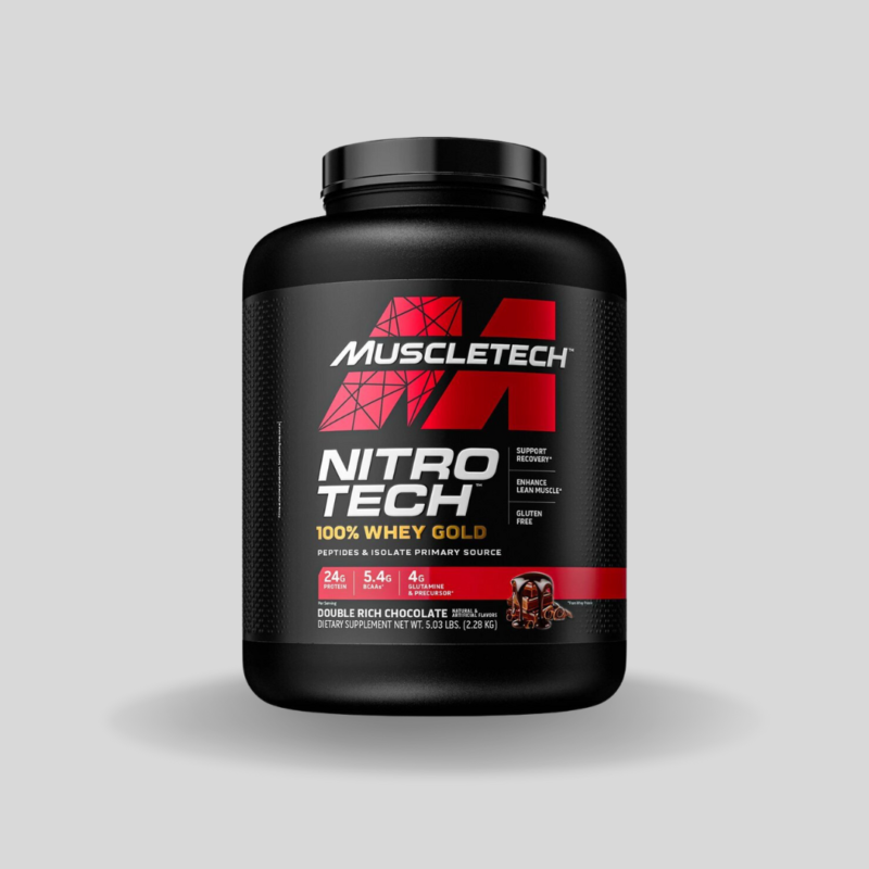 MuscleTech Nitro–Tech 100% Whey Gold Performance Series is a premium–grade protein powder manufactured by MuscleTech, a trusted name in the sports nutrition industry. It is a high–quality, great–tasting protein supplement that provides fast–digesting whey protein and an array of essential amino acids to help support muscle growth and recovery. Whey protein is a popular choice for athletes, bodybuilders, and fitness enthusiasts due to its high–quality amino acid profile, fast absorption rate, and muscle–building properties. Nitro–Tech 100% Whey Gold Performance Series is designed to provide superior whey protein and a comprehensive blend of amino acids to fuel your muscles with the nutrition they need. It also contains added ingredients such as Creatine Monohydrate and Glutamine to help maximize performance and recovery.