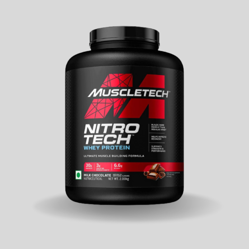 Muscletech Nitrotech Performance Series Whey Protein 1.81 kgs is an elite 12–hour sustained-release protein powder. It is an excellent post-workout recovery formula for hard-training athletes. It is a triple-sourced formula that contains whey peptides, whey protein isolate, calcium caseinate, and micellar casein. The addition of the patented 4X leucine complex helps to support exceptional muscle growth and recovery by intensifying the muscle-building process. This premium protein powder is perfectly designed to fuel your muscles for 12 hours of sustained release. This whey protein powder offers superior quality, containing 30g of protein per serving for powerful muscle repair and anti-catabolic support. It also provides 8.3g of branched-chain amino acids (BCAAs) and 4g of glutamine and precursor to help sustain the intense demands of weight lifting and muscle growth. Additionally, it has the scientifically proven core ingredients your muscles need to repair and rebuild even stronger. The muscle pump blend in Nitrotech Performance Series provides an optimized dose of glycerol and l-arginine, which helps in increasing pumps and delivering vital nutrients to hardworking muscles during workouts.