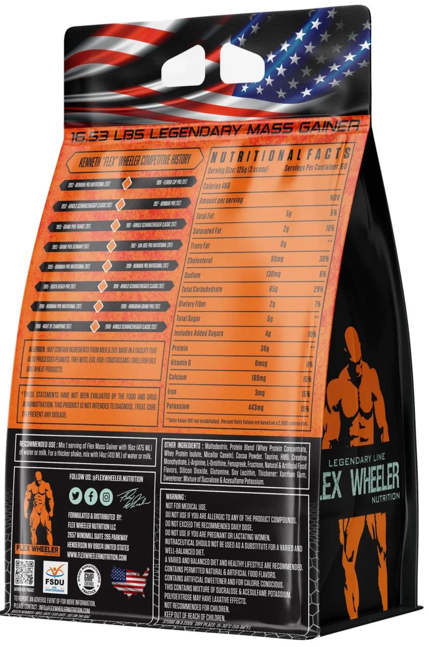 Flex Wheeler Mass Gainer 16.53 lbs | Milk Chocolate Flavor | High-Calorie Protein Powder for Muscle Growth and Recovery