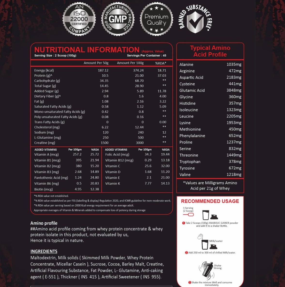 Muscle Garage Anabolic Gainer is a high-calorie, protein-rich mass gainer supplement designed for those looking to increase muscle size, strength, and body mass. Crafted with a potent combination of proteins, complex carbs, and essential micronutrients, this mass gainer powder supports your body’s energy requirements during intense training and recovery phases.