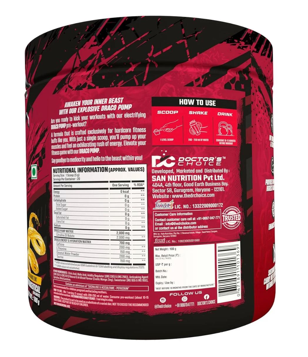 You're viewing: DC DOCTORS CHOICE Pre Workout Draco Pump for Instant Clean Energy and Intense Focus (100 G) 599.00