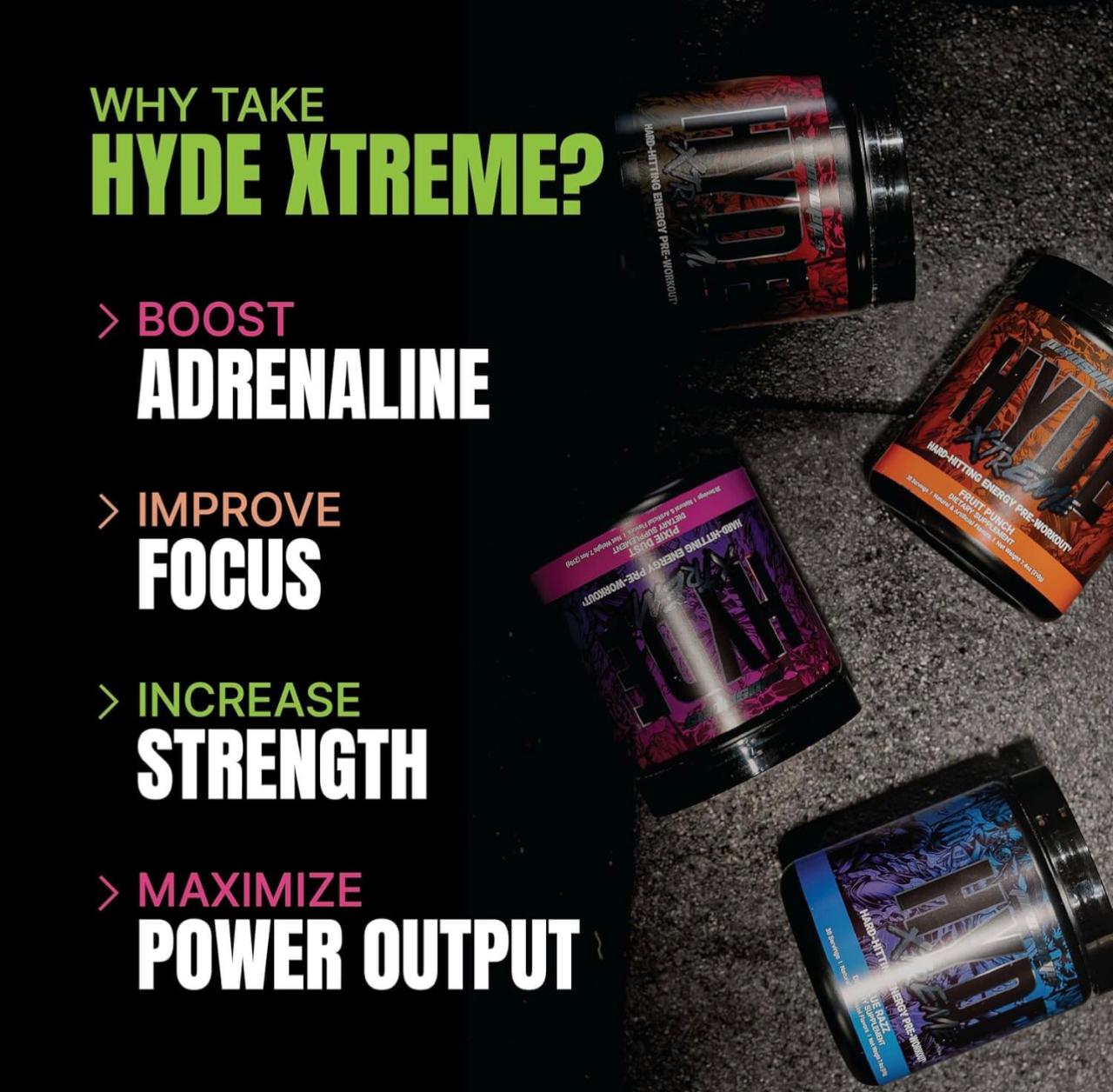 You're viewing: Hyde Xtreme – Hard Hitting Energy Pre Workout Supplement | Caffeine, Beta-alanine, Creatine HCl, L-arginine | For Muscle Pump, Vascularity, Strength and Focus | 30 servings, 195g 1,899.00