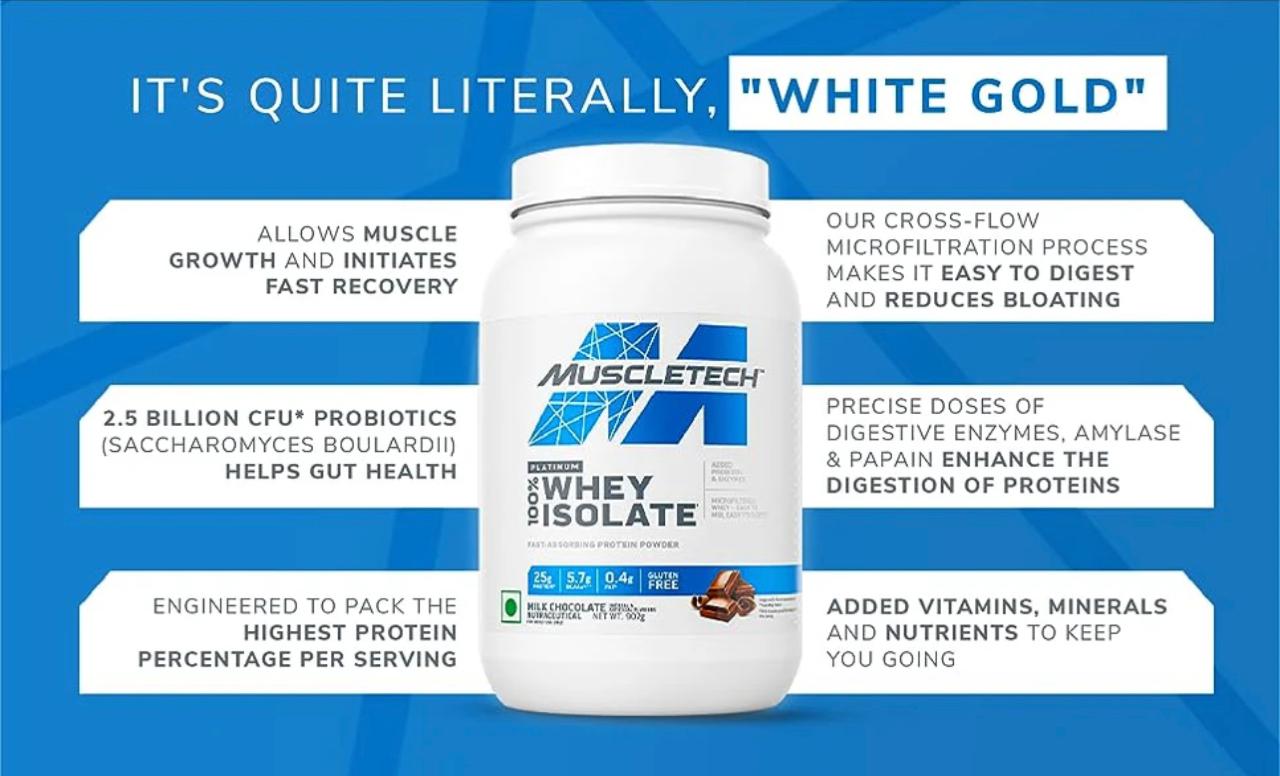 Platinum 100% Whey Isolate is one of the most advanced proteins available and engineered with our highest protein percentage per serving. Every scoop delivers 25 g of whey isolate protein to support muscle growth and help speed up recovery from the toughest workouts. The MuscleTech™ Platinum 100% Whey Isolate formula is an ultra-pure and quickly absorbing protein powder available to those who aren’t afraid to push limits.