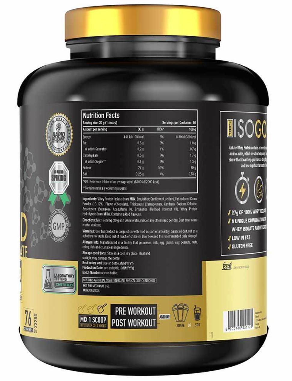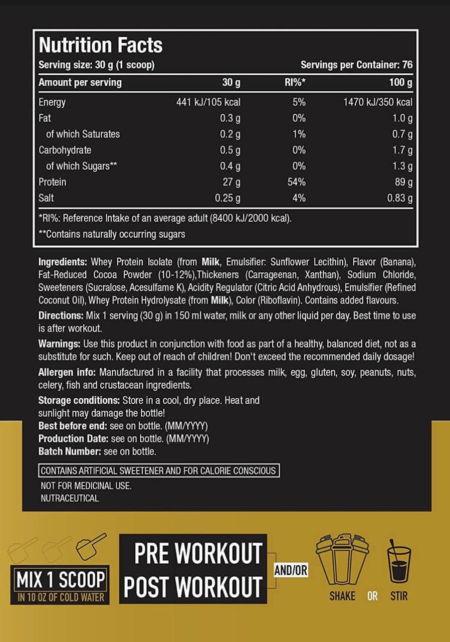 Each scoop delivers 27g of ultra-pure Whey Protein Isolate, refined through advanced microfiltration technology, to offer a clean, rapid-absorbing formula that fuels lean muscle growth, faster recovery, and superior endurance. Blended with Hydrolyzed Whey Protein and enhanced with a Digestive Enzyme Complex, ISO Gold ensures that every gram of protein is absorbed efficiently.