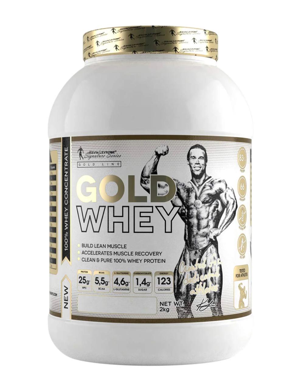 Kevin Levrone GOLD Whey. With sweeteners. Whey protein concentrate powder for preparing high-protein shakes. The product is designed for athletes and physically active people with a higher demand for protein. Protein contributes to the maintenance and growth of muscle mass.