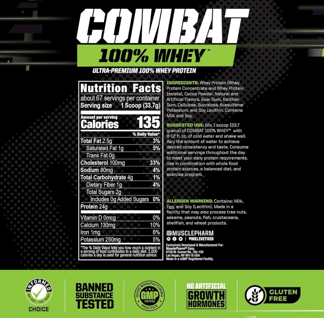 Combat 100% Whey™ is an ultra-premium blend containing 100% whey protein. Helps maintain lean muscle and replenish nutrients after workouts to fuel muscle recovery and performance that tastes great and mixes easily.