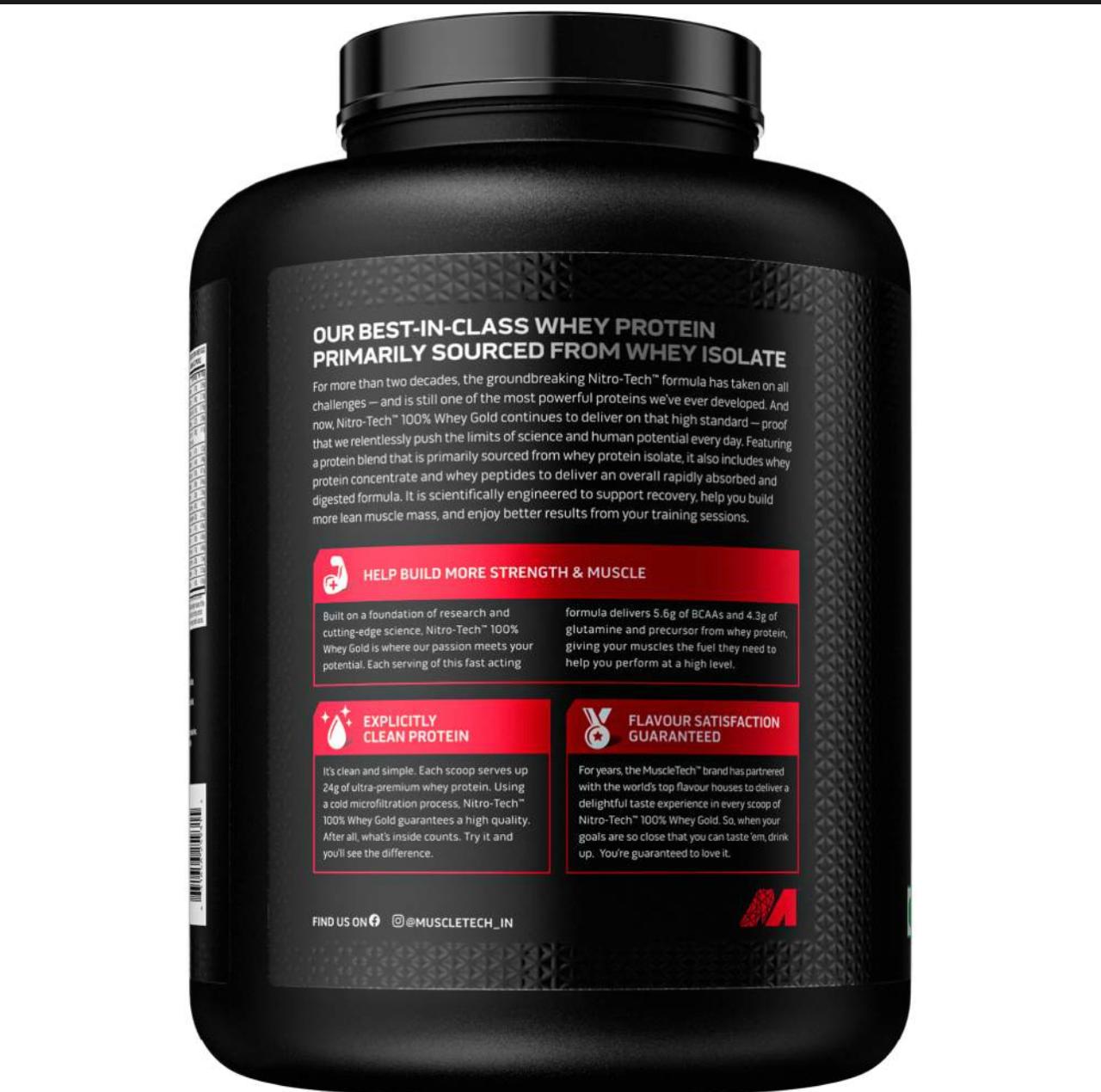 It’s clean and simple. Each scoop serves up 24 g of ultra-premium whey protein. Using a superior cold microfiltration process, Nitro-Tech® 100% Whey Gold guarantees a higher quality. After all, what’s inside counts. Try it and you’ll see the difference.
