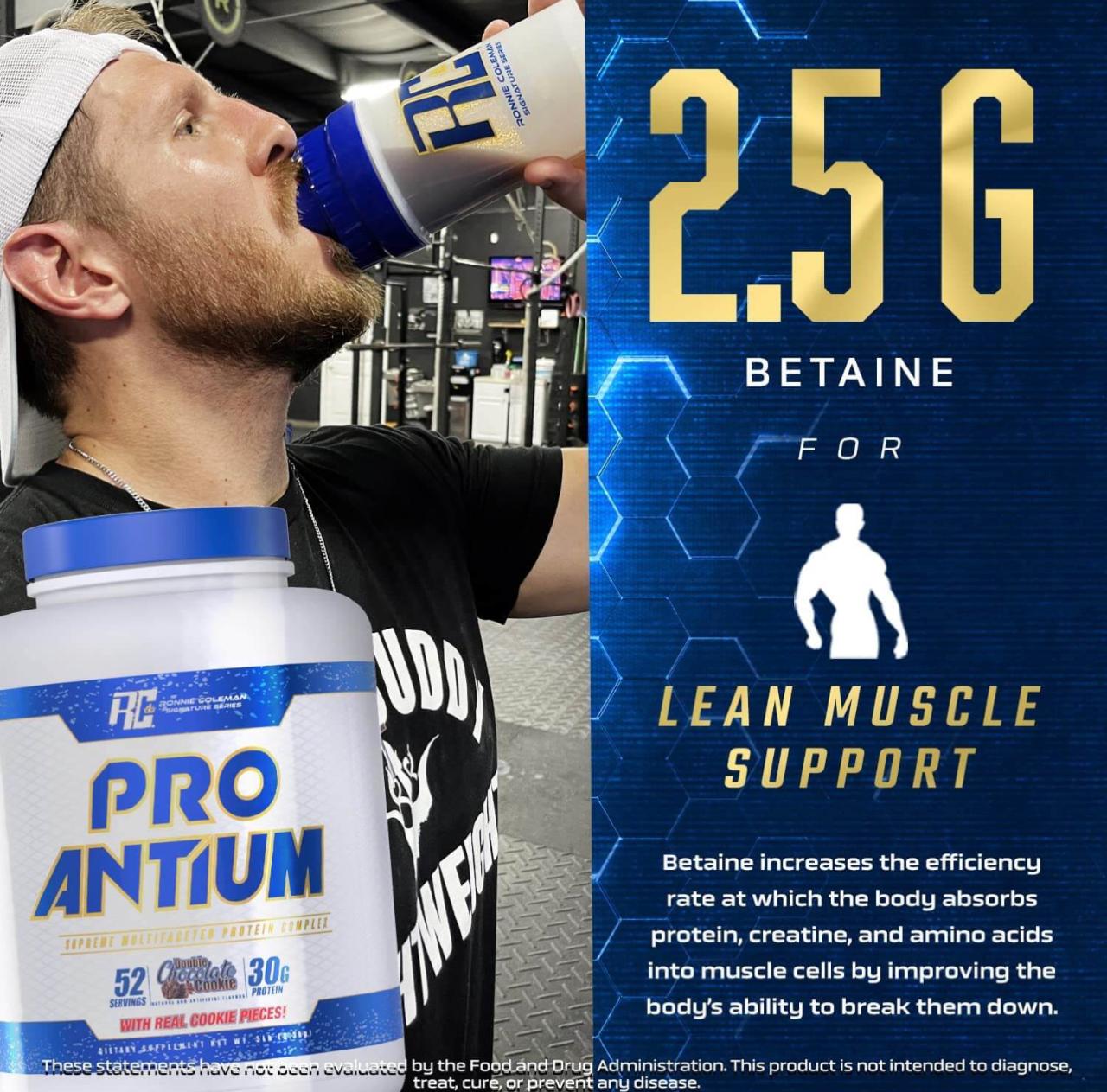 Take your muscle-building nutrition to the next level with PRO ANTlUM, a premium multiphase protein complex from the legendary Ronnie Coleman Signature Series. Designed to deliver both fast and slow-digesting proteins, PRO ANTlUM fuels your muscles with a sustained release of amino acids—perfect for recovery, growth, and strength gains throughout the day and night.